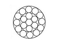 Diámetro nominal del hilo de acero (mm) | Área de la sección nominal del hilo de acero (mm2) | Carga de rotura mínima (kN) | Peso aproximado (kg/km) | ||